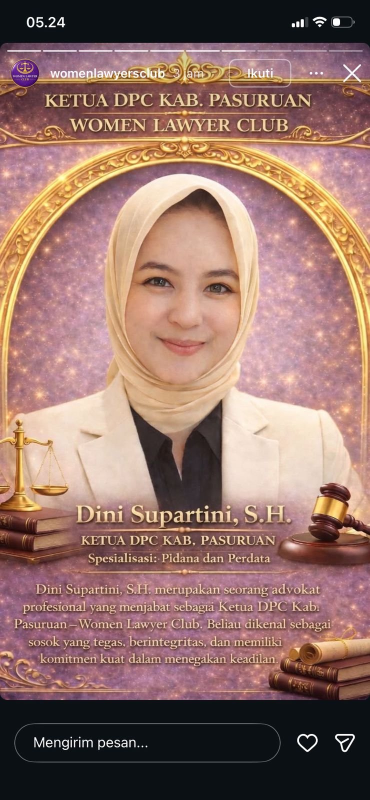 Perempuan Tangguh dan Advokat Profesional, Dini Supartini, S.H., Ditunjuk sebagai Ketua DPC WLC Kabupaten Pasuruan